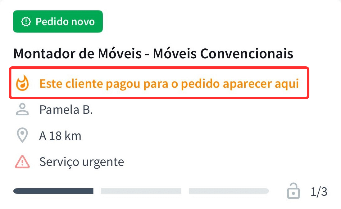 Essa informação ajuda você a entender quantos profissionais já estão concorrendo pelo mesmo cliente antes de decidir comprar o pedido.