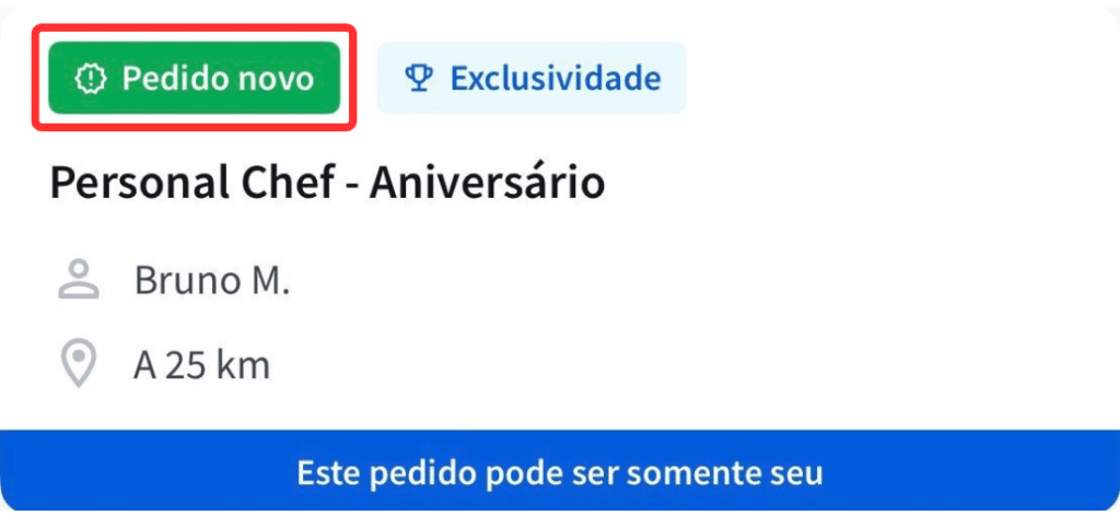 Quando o pedido aparece com o selo Exclusividade, significa que nenhum profissional comprou ainda. Nesse momento, você pode escolher a forma como deseja comprar o pedido.